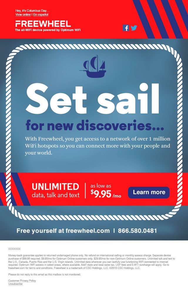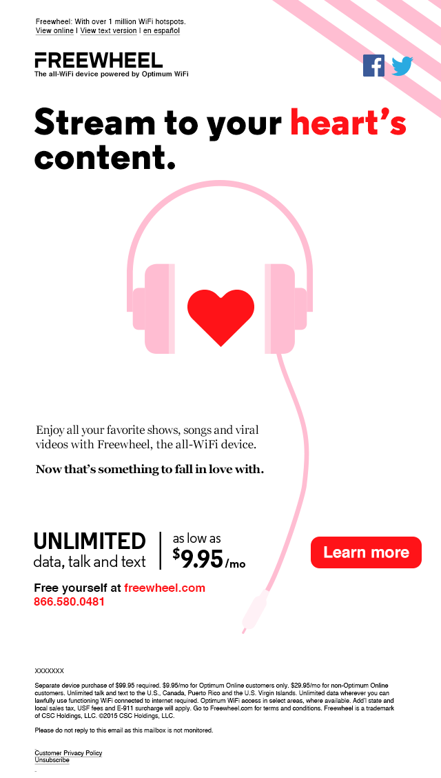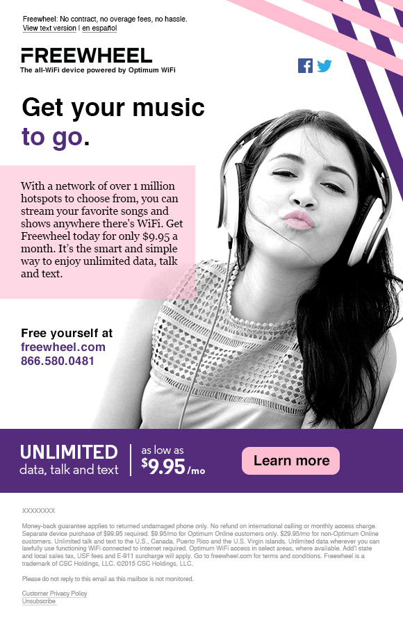 Emails for Freewheel, the all-WiFi device by Cablevision.